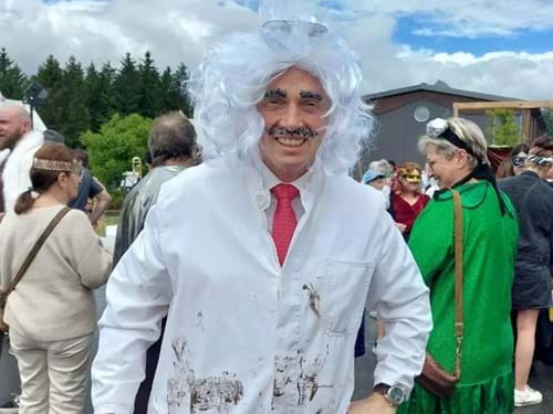 Bürgermeister-Aufgabe: Thomas Löffler wird zum verrückten Professor, der in seine Zeitmaschine steigt und auf einen Schlag unsichtbar wird.